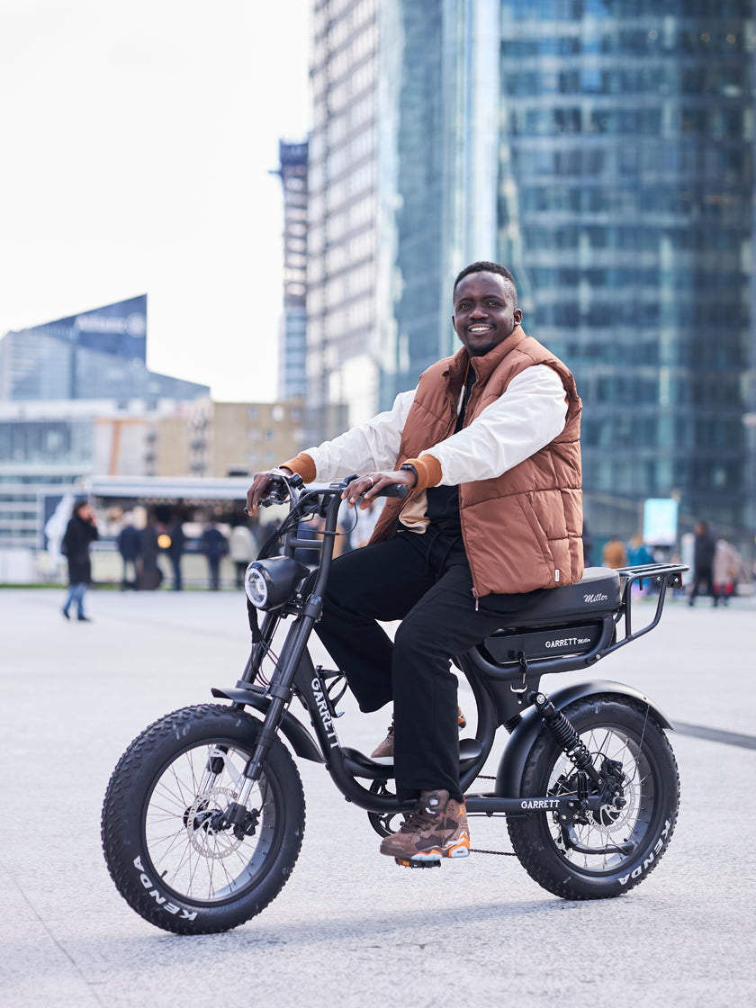 Les gros pneus Kenda 20 pouces sont certifiés "E-Bike" tout comme les suspensions avant du Garrett Miller X qui apportent à la fois confort et réduisent les vibrations issues de la chaussée.